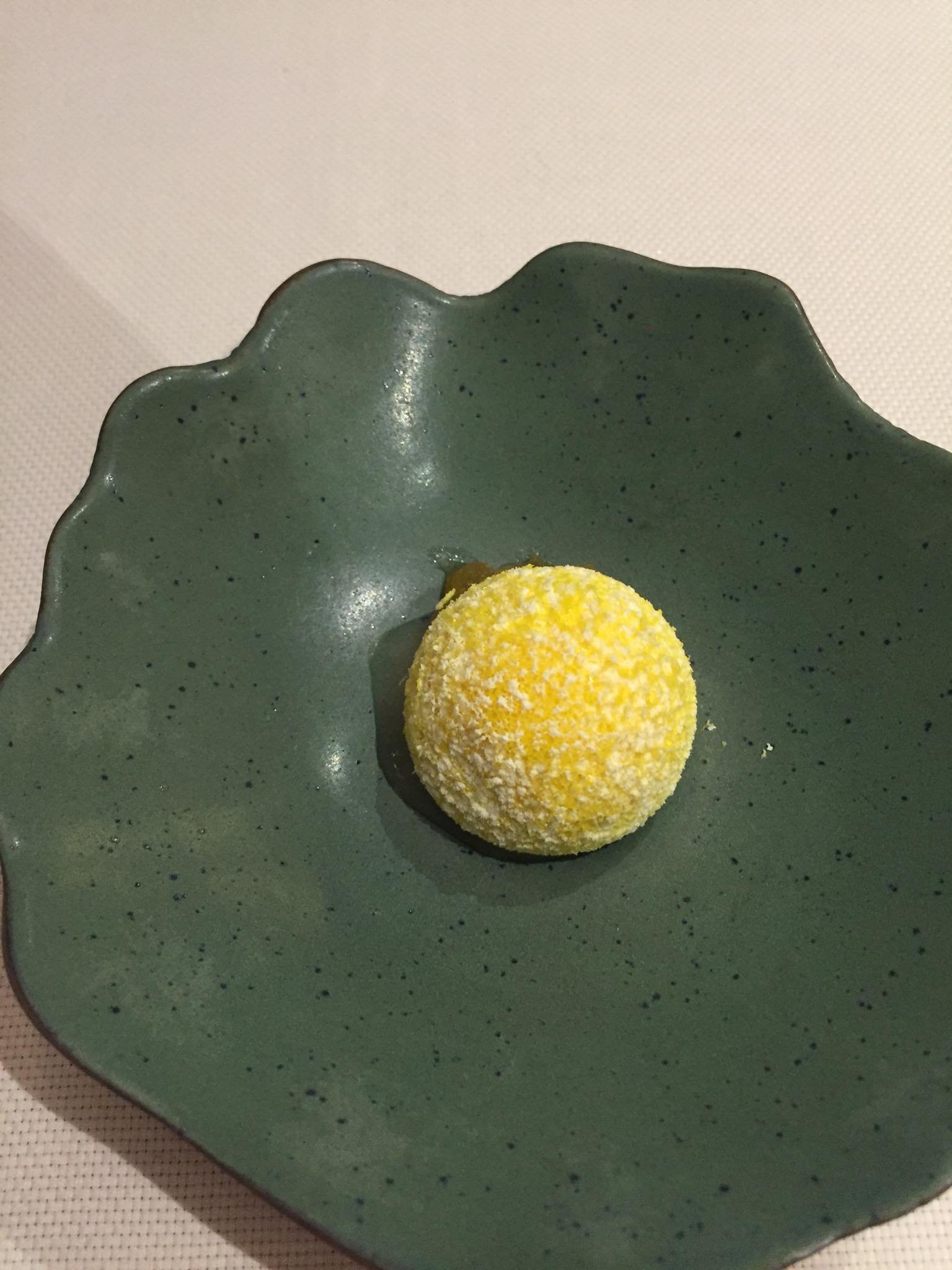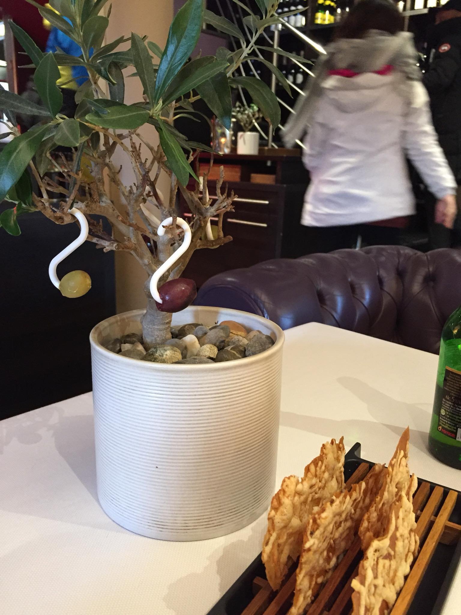當日我們每人點了一個5個course的set,一開始就送上由真盤栽掛著兩粒檻欖🤔🤔